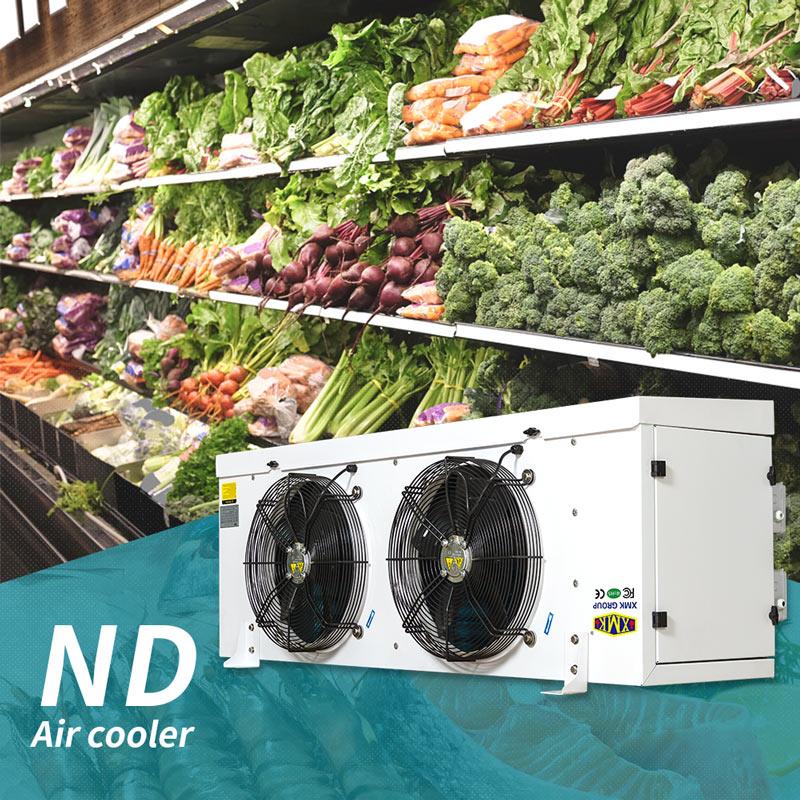 ND系列冷庫蒸發(fā)器是一種配套于氟利昂制冷機(jī)組使用于各種冷庫的庫內(nèi)冷卻降溫設(shè)備,按適用溫度來分,分為M、L、J三種系列,可分別適用于不同的庫溫,M型冷風(fēng)機(jī)主要適用于0℃左右的保鮮庫;L型冷風(fēng)機(jī)主要適用于-18℃左右的冷藏庫;J型冷風(fēng)機(jī)主要適用于-25℃以下的速凍庫