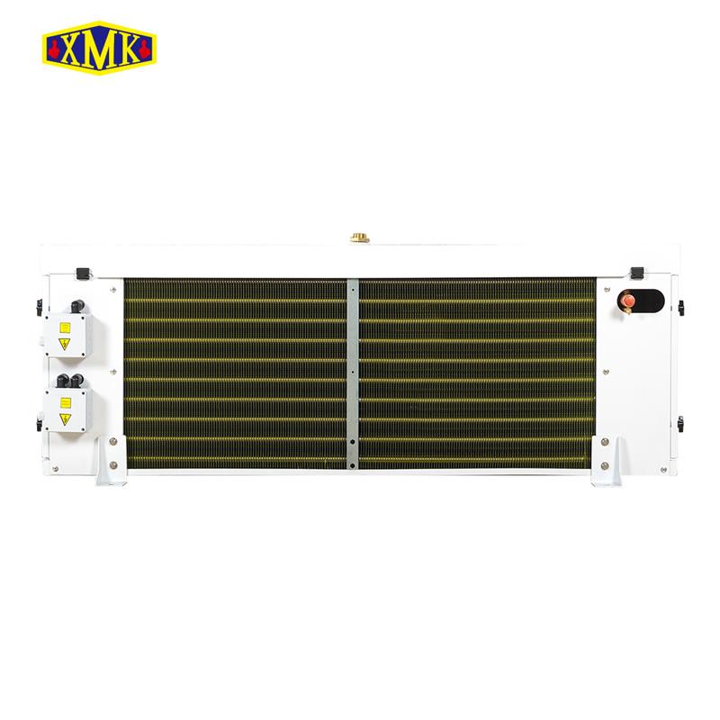 標(biāo)準(zhǔn)采用電熱除霜,不銹鋼加熱管均布于盤管翅片中及內(nèi)水盤板上,獨(dú)立的加熱管接線盒。